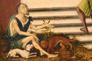 „Żył pewien człowiek bogaty, który ubierał się w purpurę i bisior i dzień w dzień ucztował wystawnie. U bramy jego pałacu leżał żebrak pokryty wrzodami, imieniem Łazarz. Pragnął on nasycić się odpadkami ze stołu bogacza. A także psy przychodziły i lizały jego wrzody”. Problemem bogatego człowieka z przypowieści Jezusa nie był stan jego majątku. Problemem było to, że nie potrafił się nim dzielić. Jego zatwardziałość serca, obojętność na los biedaka, zamknięcie stają się przyczyną późniejszego, tragicznego w skutkach i rozciągniętego na wieczność nieszczęścia. Historia bogacza i Łazarza to przestroga dla nas wszystkich. I warto się nią przejąć, zastanowić nad wyznawaną przez siebie hierarchią wartości, by jak bogacz z przypowieści nie znaleźć się w otchłani piekła.